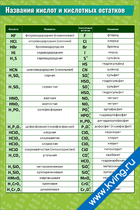 Плакат «Названия кислот и кислотных остатков»